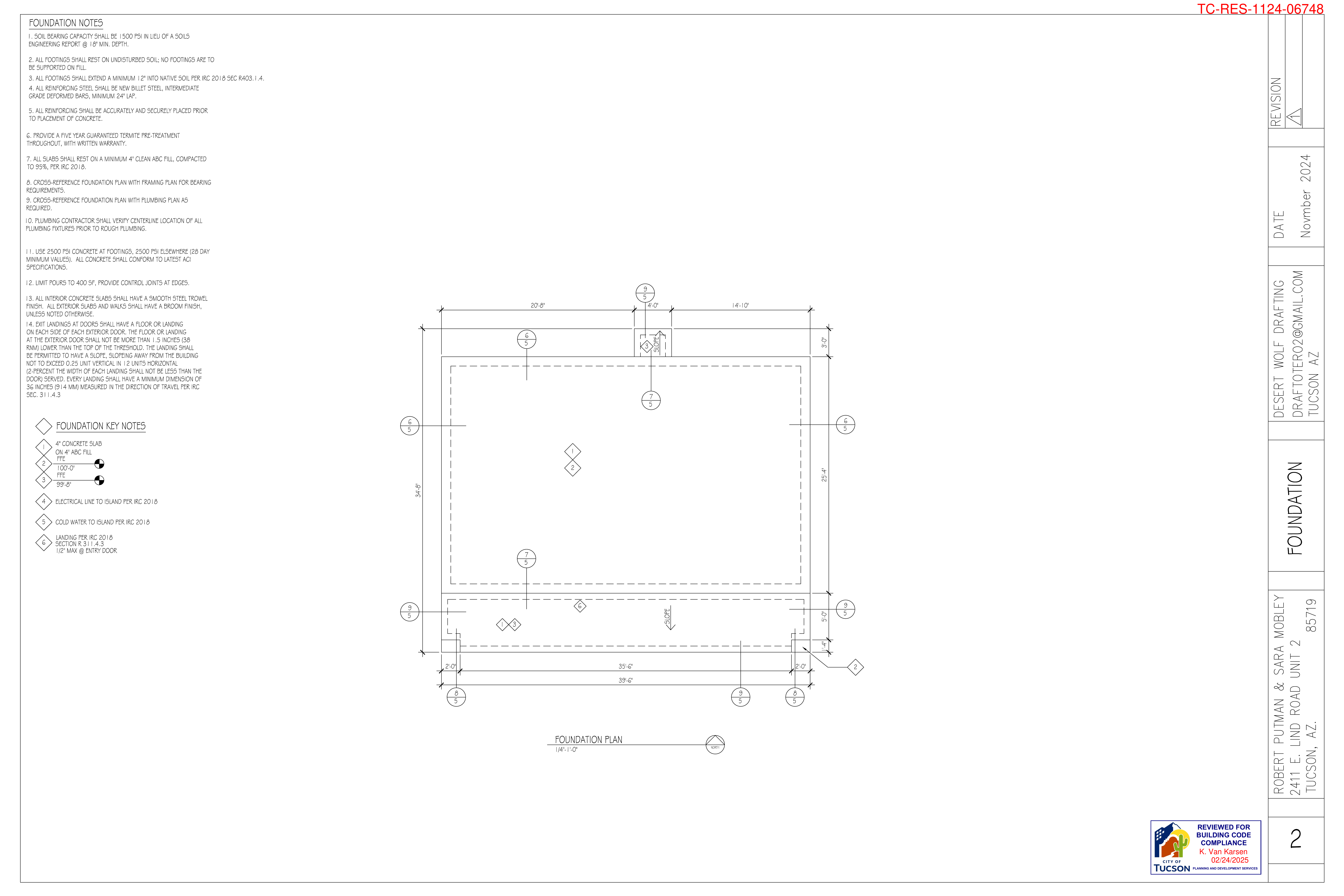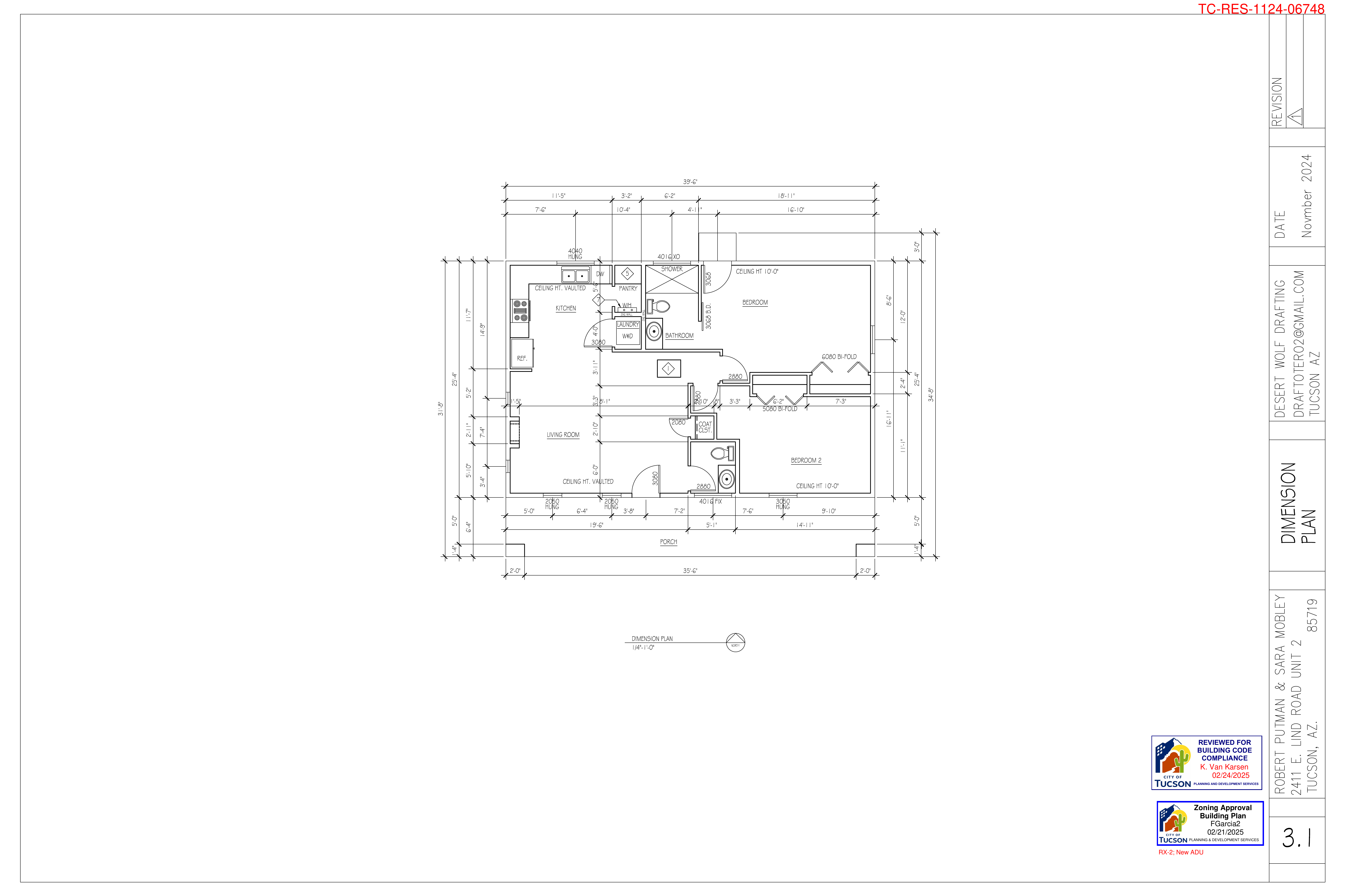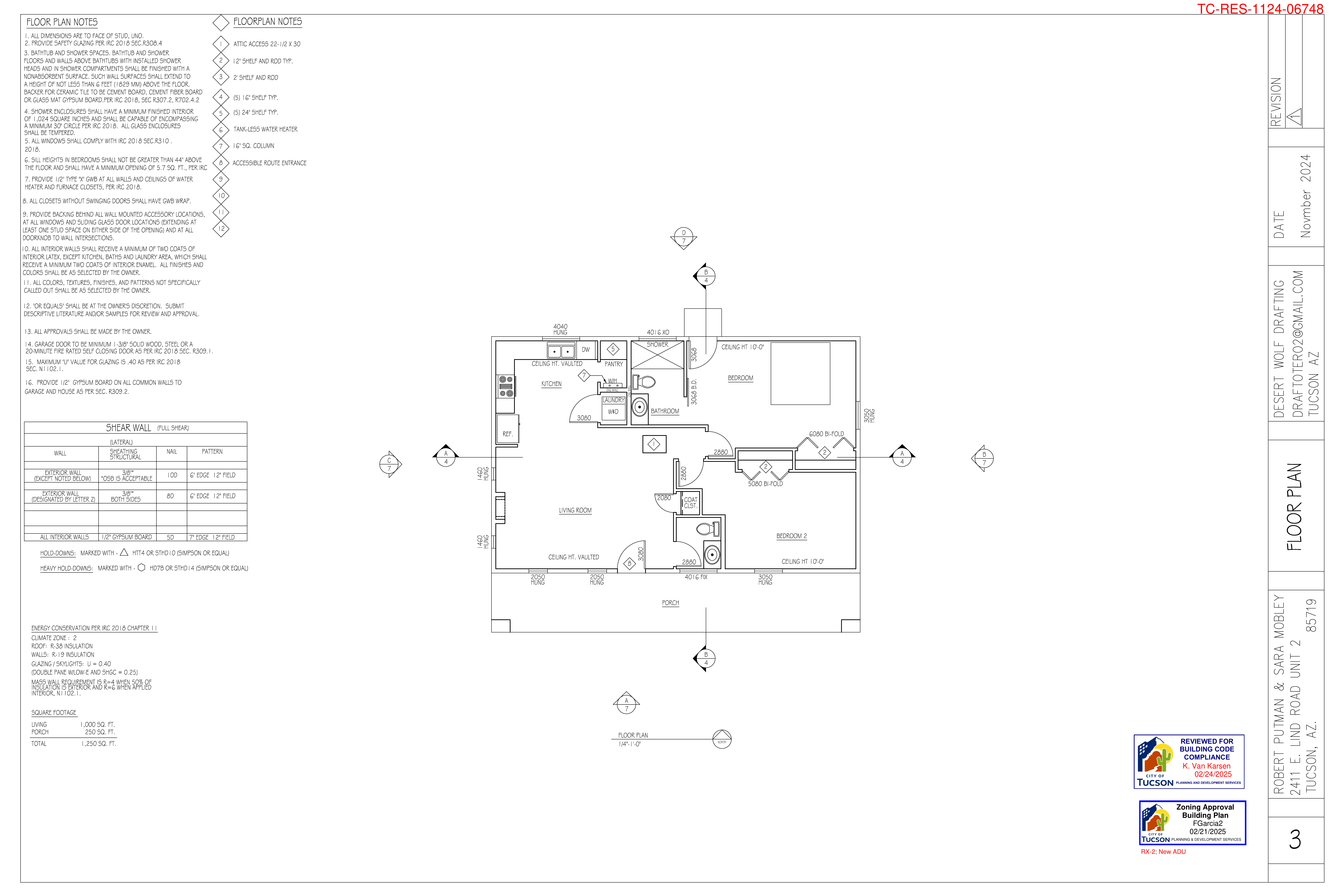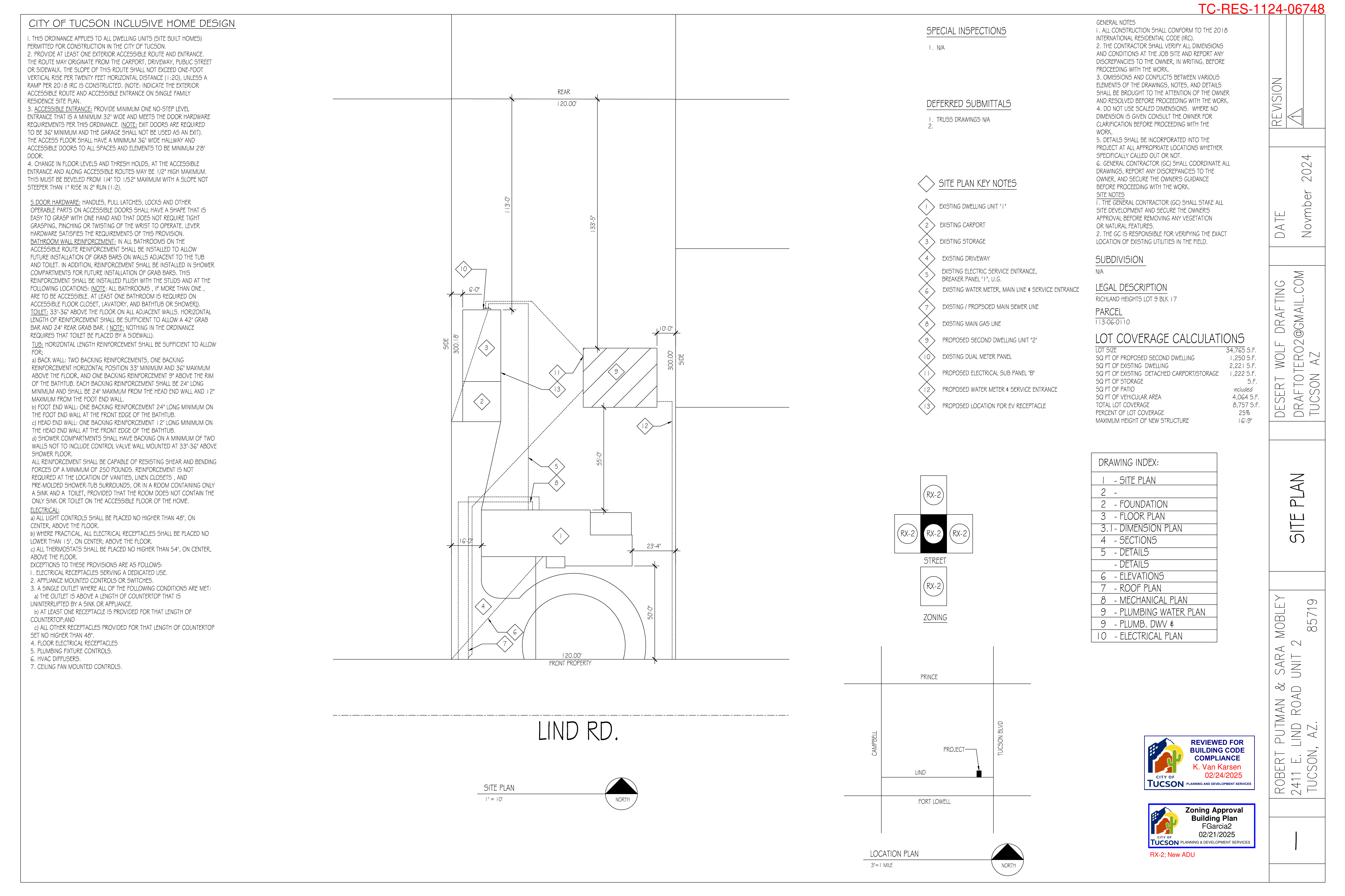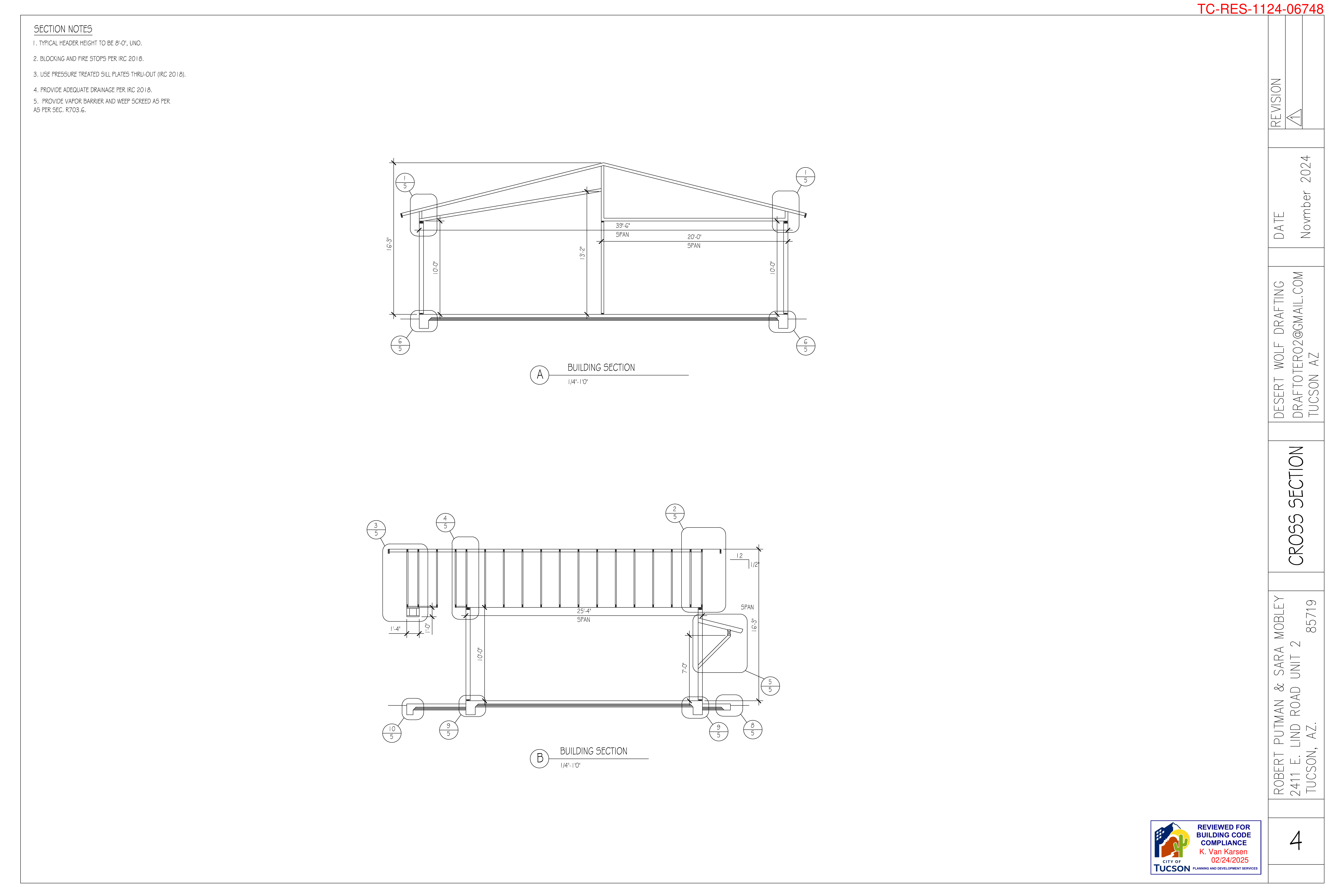 Complete architectural plans including site plans, floor plans, elevations, and construction details as approved by the City of Tucson.